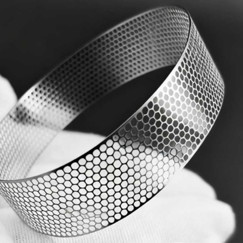 We use photochemical etching, a digital and flexible manufacturing process. It involves selectively removing metal with chemicals to create precise, stress-free holes without burrs or deformation, perfect for complex and custom designs.