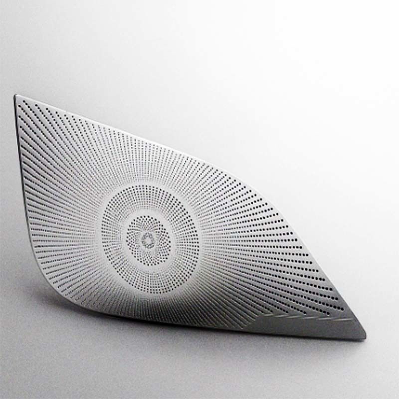 Our automotive speaker mesh is a precision-etched metal component designed to protect speakers while ensuring optimal sound quality and clarity. It is a critical part for automotive audio systems, combining durability with acoustic performance.